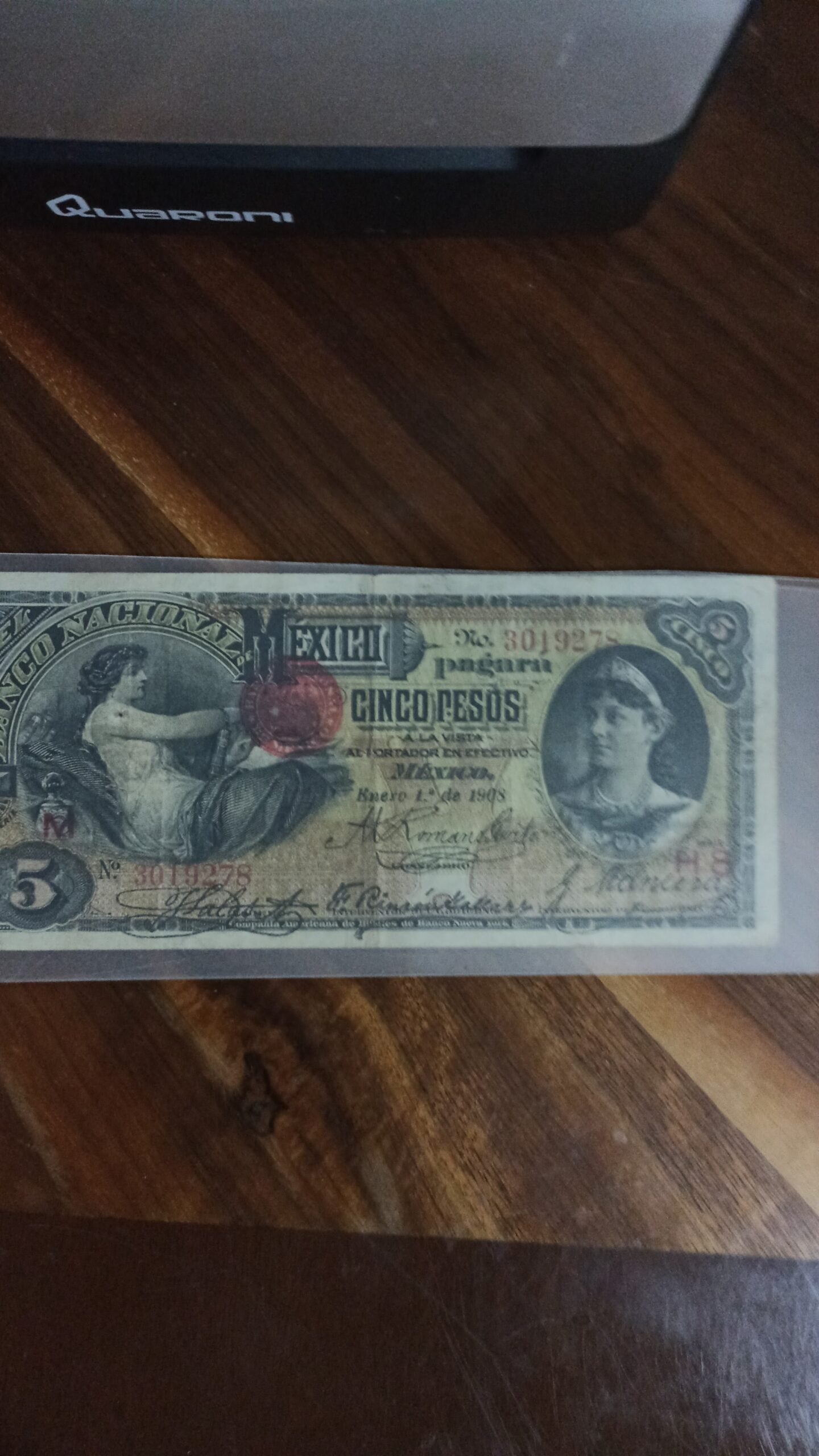 BILLETE DE COLECCION CINCO PESOS BANCO DE MEXICO AÑO 1908