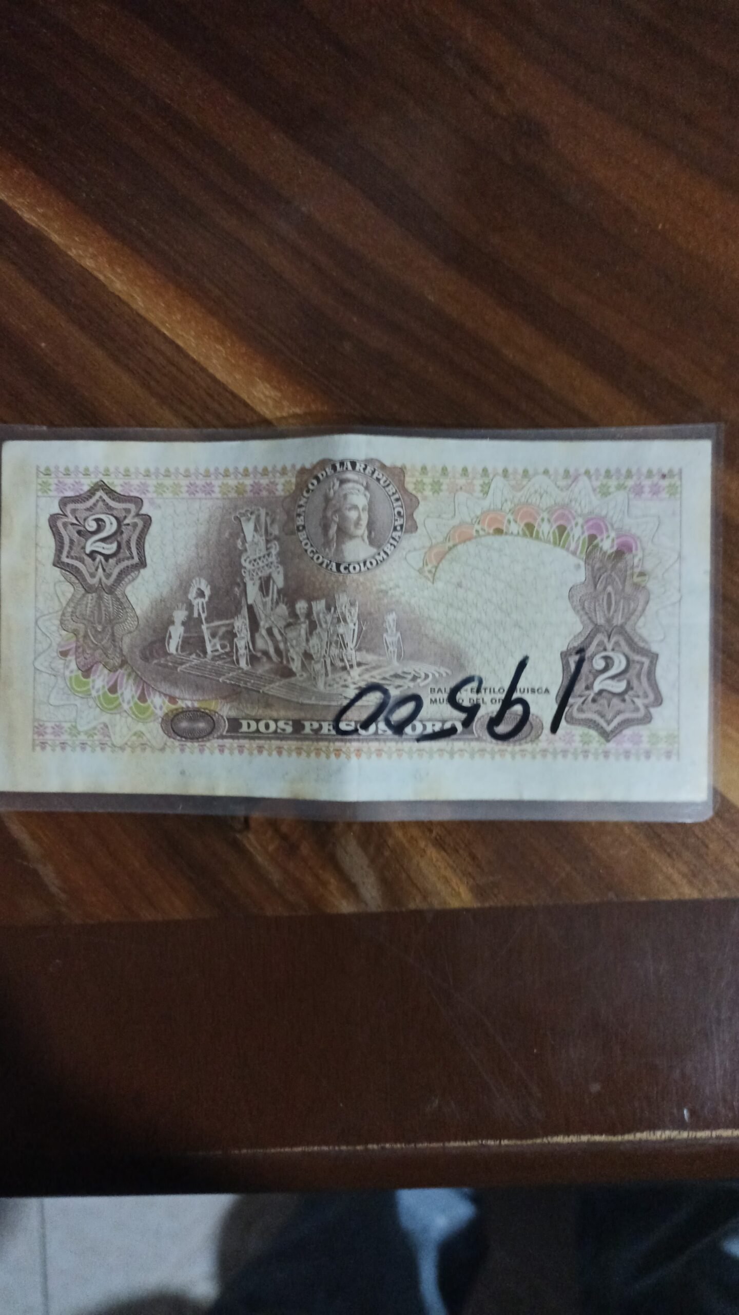 BILLETE DE COLECCION DOS PESOS ORO DE COLOMBIA AÑO 1972