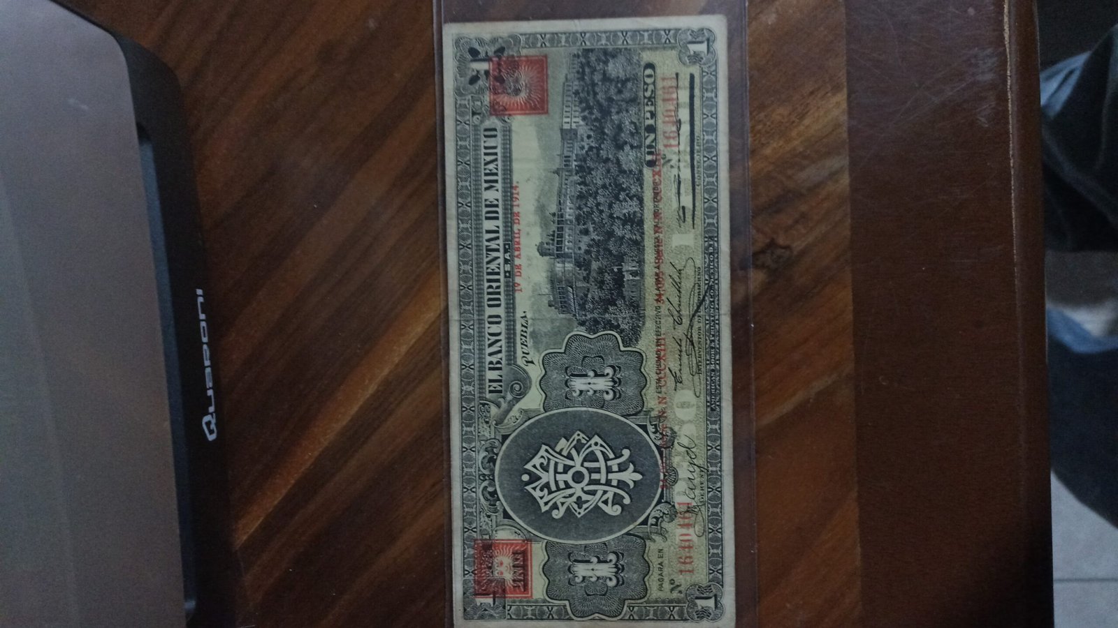 BILLETE DE COLECCION UN PESO DE PUEBLA BANCO ORIENTAL DE MEXICO AÑO 1914