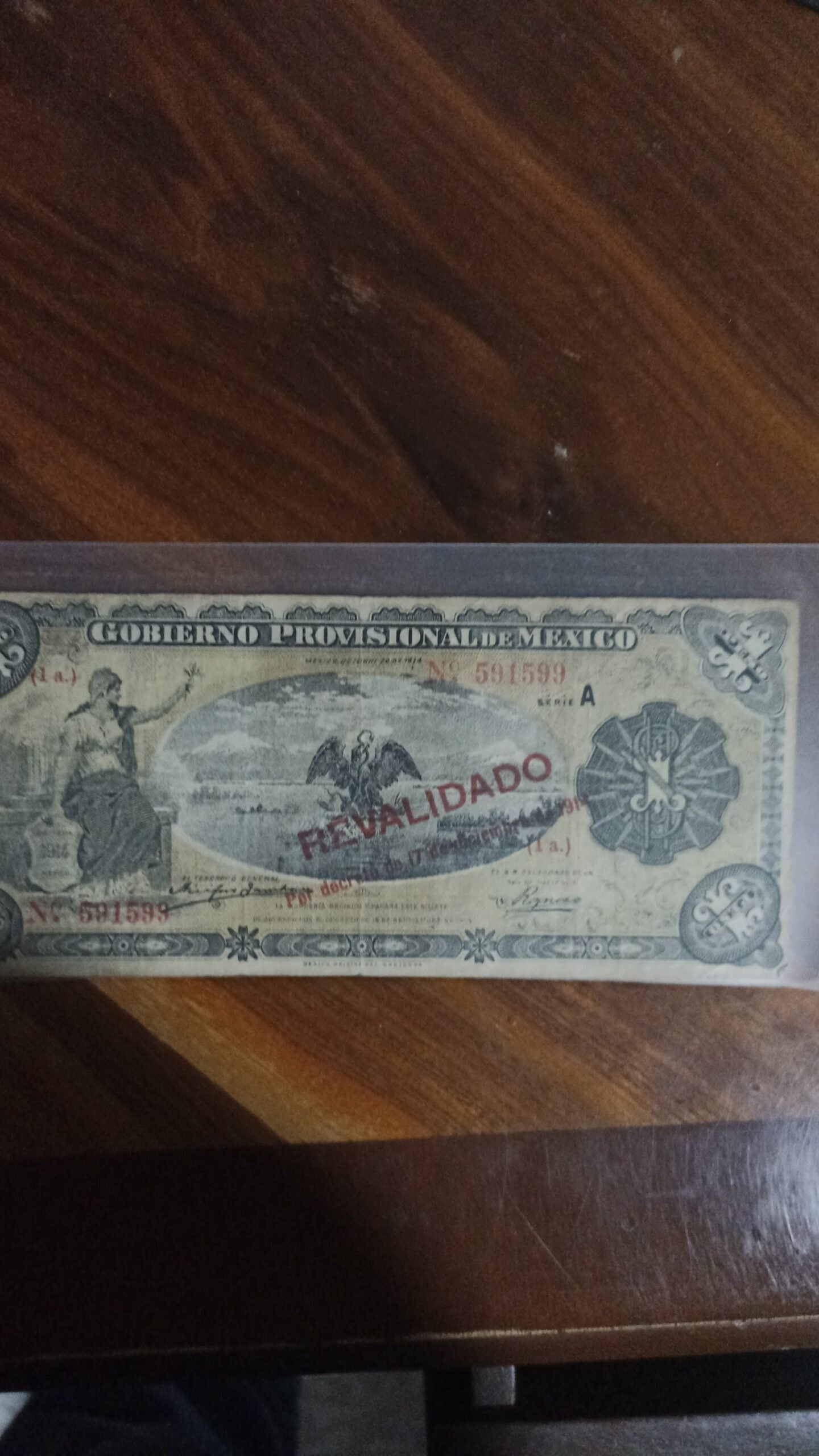 BILLETE DE COLECCION UN PESO SERIE A GOBIERNO PROVISIONAL DE MEXICO AÑO 1914